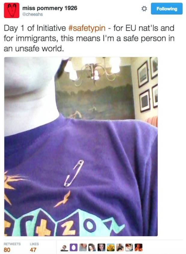 说到这个,你必须要知道英国的一个“别针运动”。英国“脱欧”公投结果出来以后,种族主义事件频发。伦敦波兰中心的墙上画满了种族主义的涂鸦。