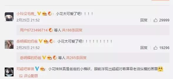 网友喊话说,小花妹妹太可爱了吧!真是爸爸的小棉袄。