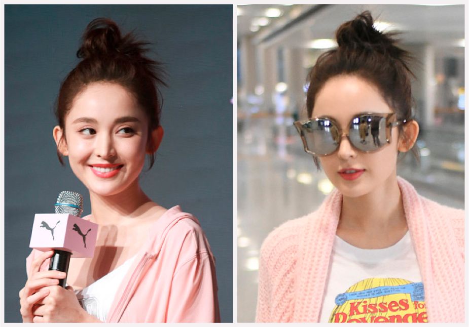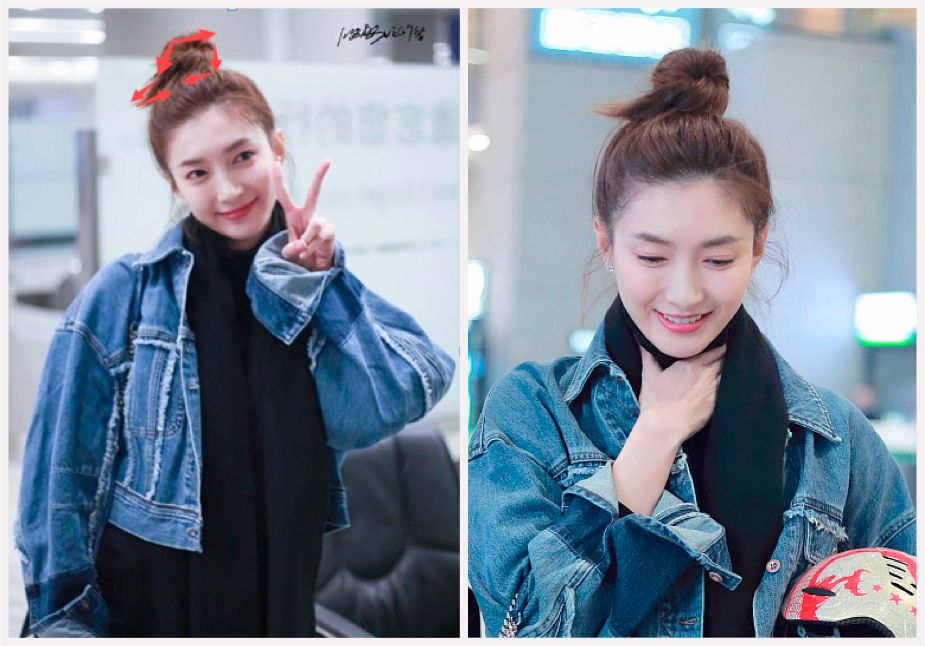 娜扎也扎上这样时髦的“逗号丸子头”