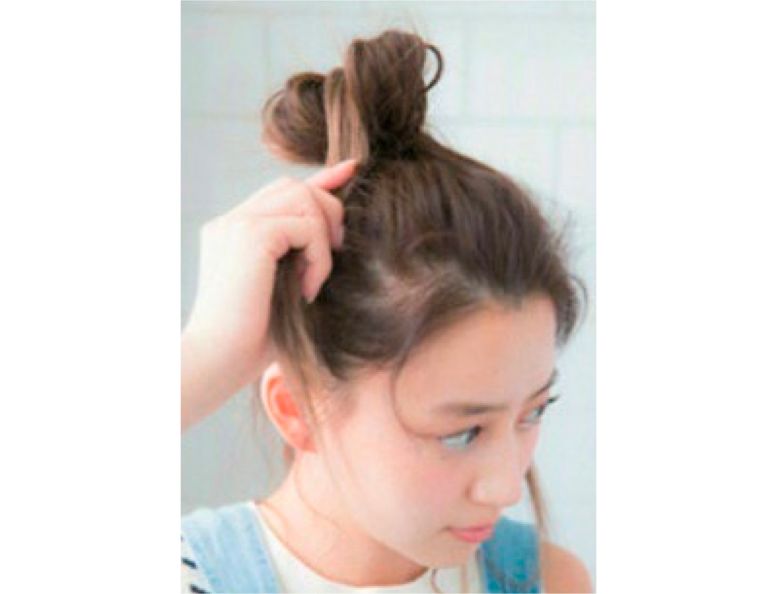 可以用发尾将丸子头分成两个部分