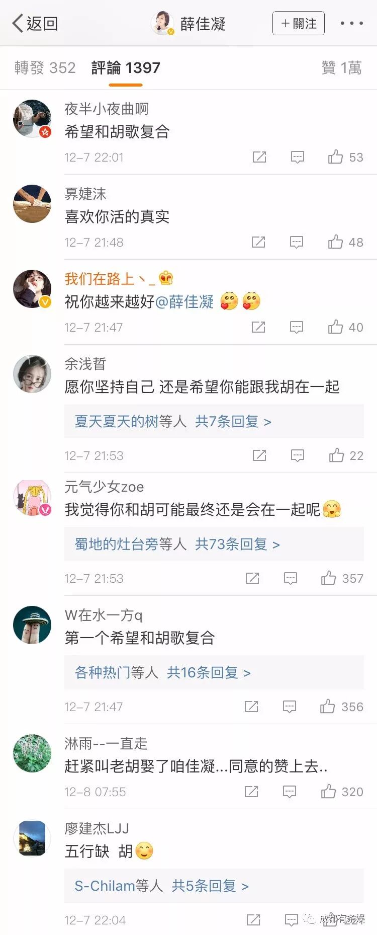 而昨晚薛佳凝的微博一出,评论里也成片都是希望两人复合的!