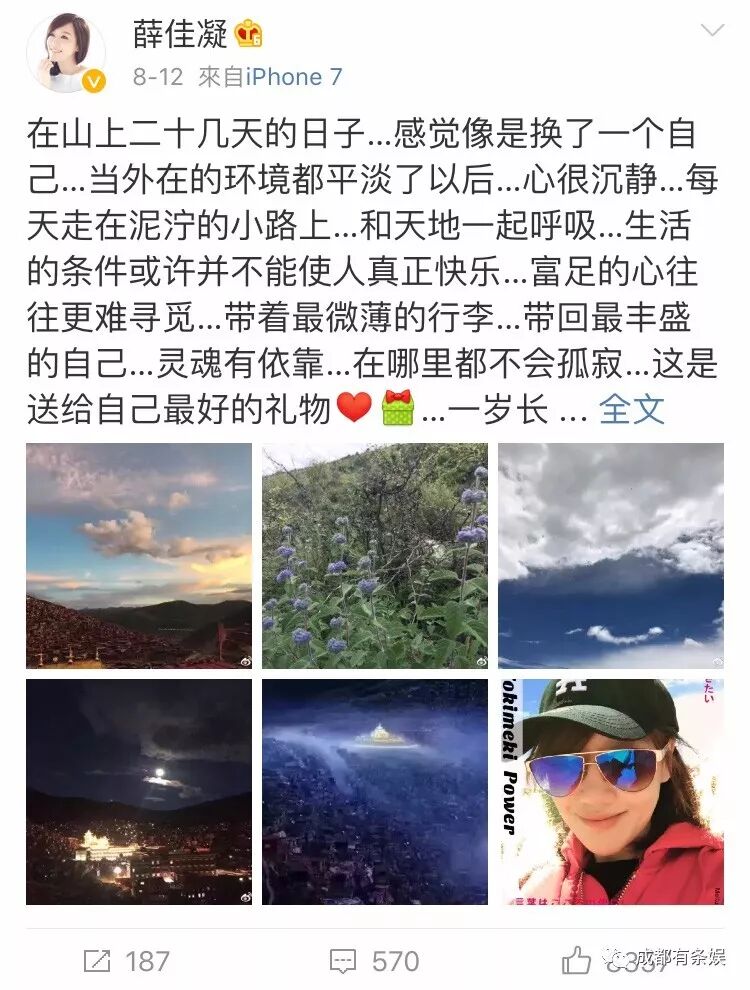 昨晚,薛佳凝突然在微博发文,满满都是看破红尘的味道。