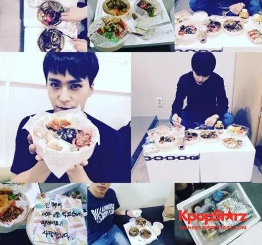 公开的照片中,朴信惠为龙俊亨给BEAST成员们准备的午餐便当小箱子被打开,丰富美味的食物也被摆放出来,BEAST成员孙东云手举着便当盒表示着感谢。