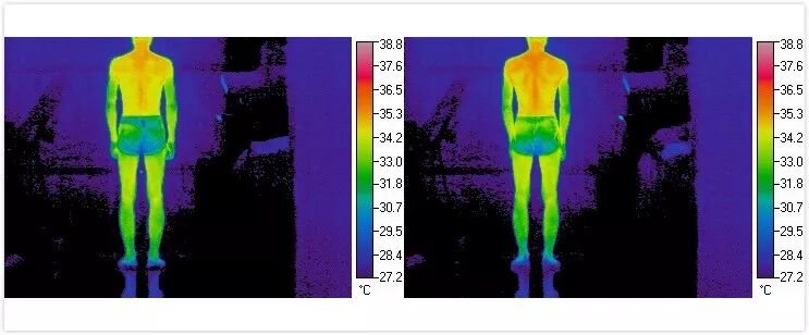 这款磨毛保暖内衣和其他品牌普通内衣产品的热力对比图可以看出,这款产品的热力图明显比其他产品高2-3度。