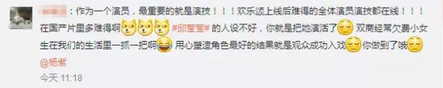 还有的说“虽然杨紫演技开挂,但还是想手撕邱莹莹”,观众入戏太深,引来《欢乐颂》制片人侯鸿亮安慰:杨紫演得太好,观众带入了,你要承受观众的怒火,顶住!