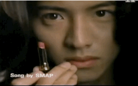 ▼ 96年接拍化妝品牌Kanebo的唇膏广告,杀光当年几亿雌性动物!挂在JR车厢內的poster不用一天就被人抢清,相当夸张!