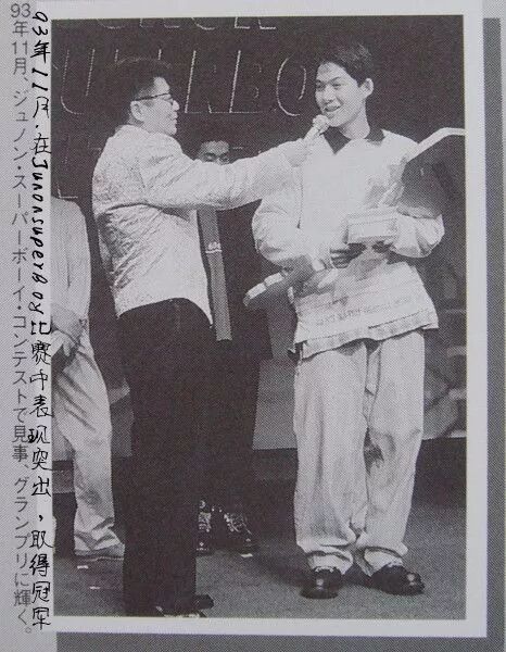 关于这次比赛还有一个小插曲,性格有点小倔强的柏原崇原本并不想参加这个比赛,妈妈劝他说,如果去参加比赛就可以带他吃全东京最好吃的拉面,结果少年柏原崇就因为这一碗拉面妥协了,去乖乖参加了比赛,最终拿到了大奖。