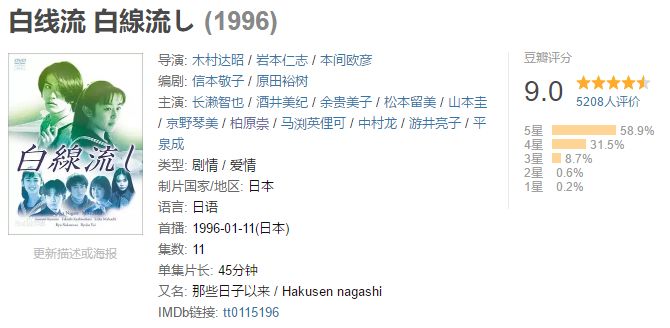 这一年,柏原崇还出演了豆瓣评分 9.0 的神剧《白线流》,饰演优等生“长谷部优介”。