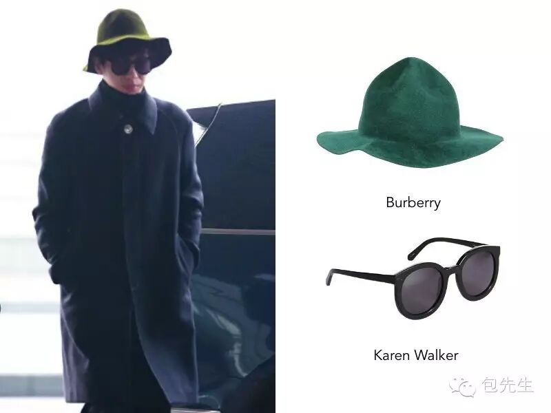 井柏然对小配饰很在意,比如Burberry走秀款的波浪形的帽子还有最百搭的墨镜Karen Walker。