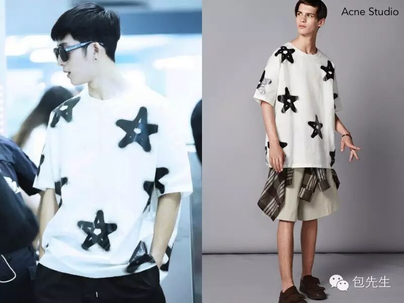 下面这件短袖我看他穿得好看就自己买了。终究是一件很好看的短袖,可是还是他穿得好帅呀...