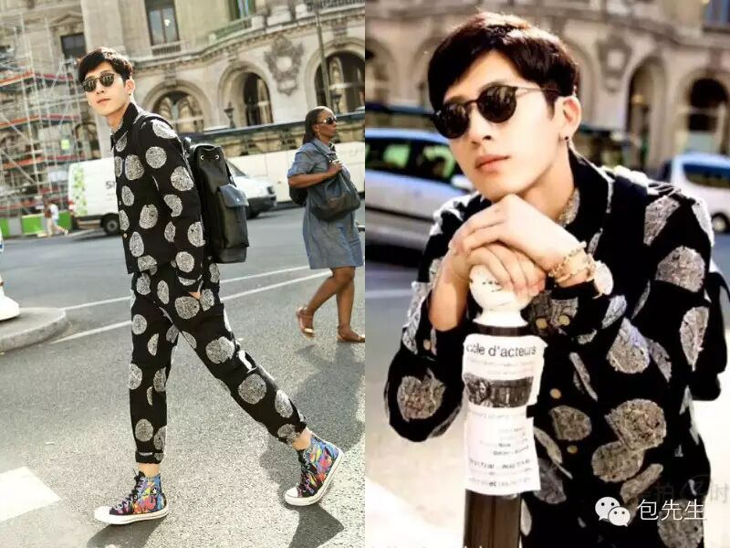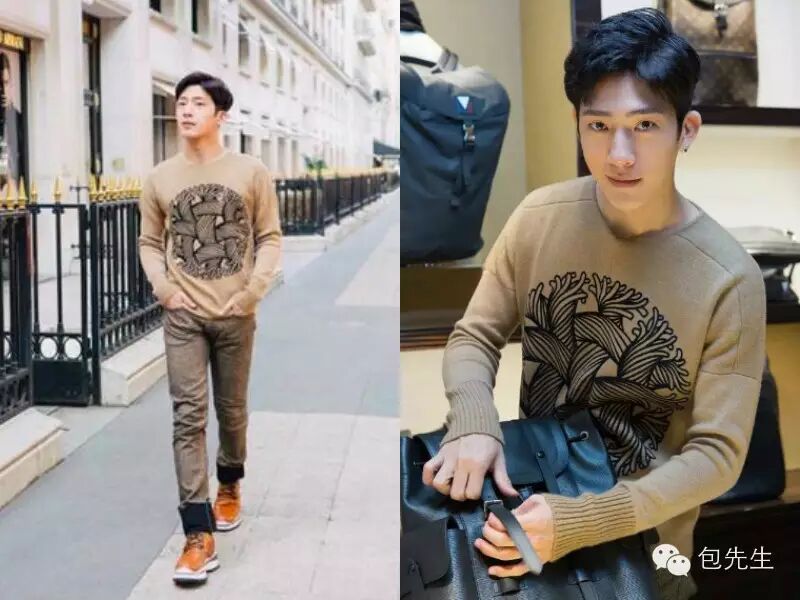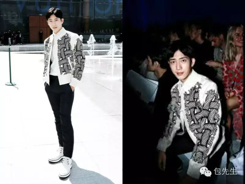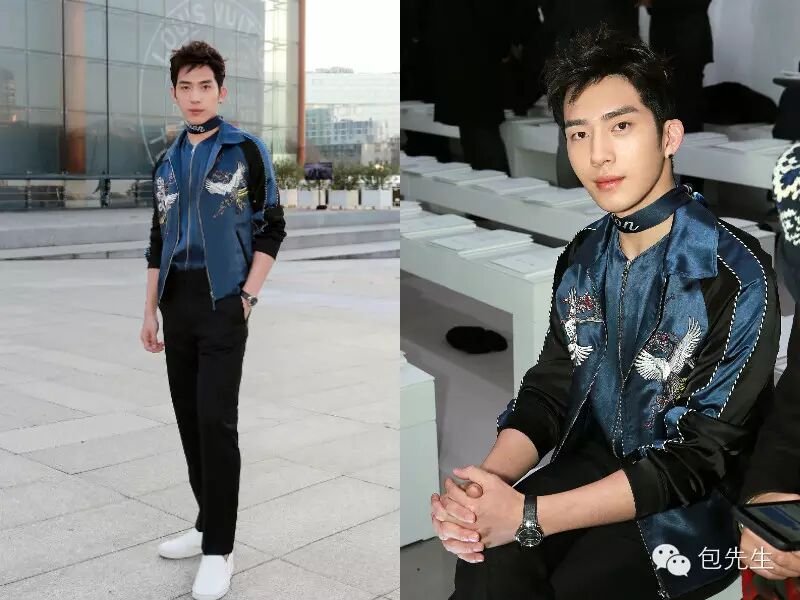 先来看看井柏然这两次去Louis Vuitton秀场穿的衣服,今年井柏然选择的是仙鹤秀场款夹克,搭配了这两年很流行的脖巾,据井柏然说是模仿了小王子的造型,也是Louis Vuitton的模特走秀时的造型,模特身材的他驾驭起来毫无压力。去年井柏然则选择了绳结款夹克,还配上了难度比较大的中分发型,帅气逼人。