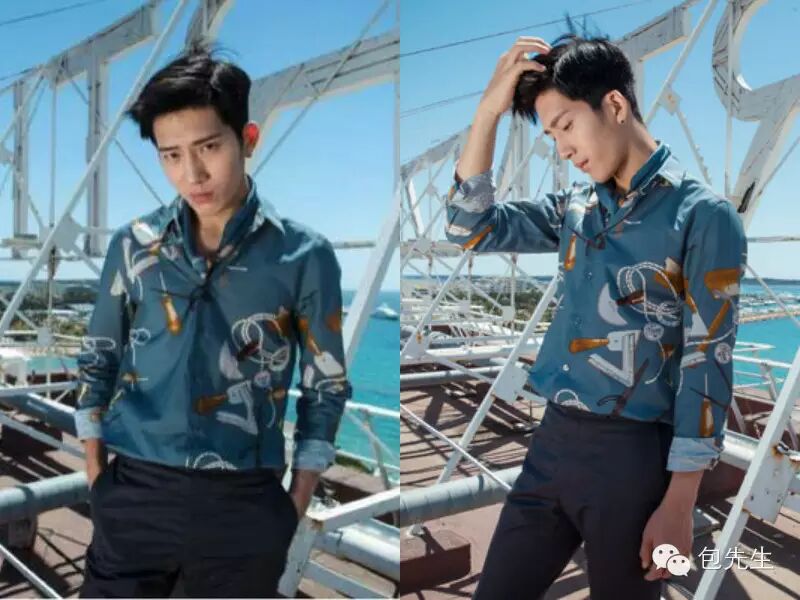 井柏然有时候也会尝试一些比较出位的单品,比如在戛纳电影节穿的这件大图案衬衫,一秒钟变成高级的花花公子一枚。