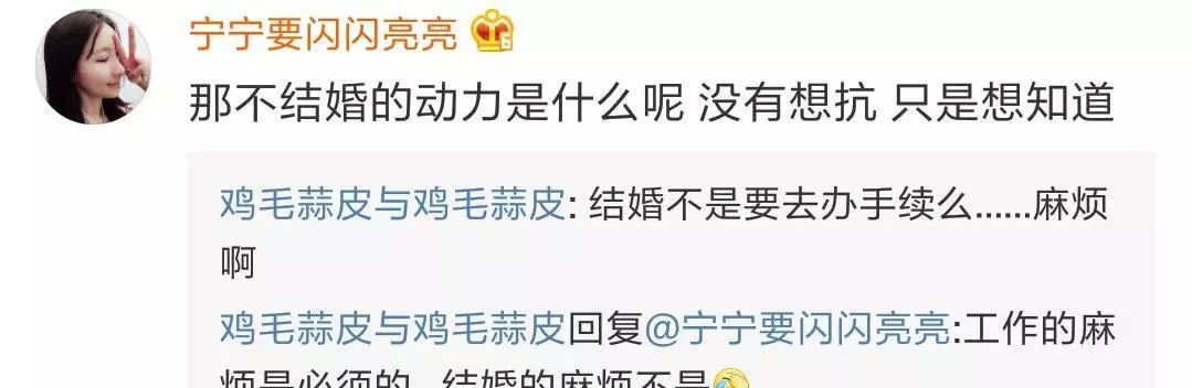 徐静蕾和黄立行在2010年传出恋情,至今已经有九年了。两人的感情非常的稳定、甜蜜,经常在网上晒出他们的旅游照片。对于这样稳定的两个人至今都没有结婚,有一些网友还是很疑惑的。因为徐静蕾说暂时没有结婚的动力,因此就有网友,提问,这哥不结婚的动力是什么呢?徐静蕾回复:“结婚不是要去办手续吗?麻烦啊。”“工作的麻烦是必须的,结婚的麻烦不是。”