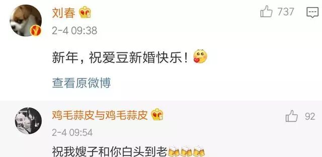 2月4日,徐静蕾发了一条微博,说新的一年,祝大家新年快乐!随后她的好朋友刘春,回复:新年,祝爱豆新婚快乐。这句话,似乎在暗示徐静蕾和黄立行已经结婚了,他祝福他们结婚快乐。当时,徐静蕾对这句话没有进行澄清,而是回复了:祝我嫂子和你白头到老。这个行为被认为变相的默认了她和黄立行结婚的消息,于是,网上就疯传了起来。