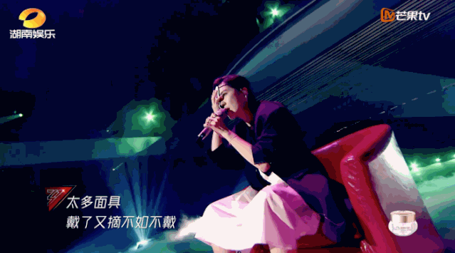 所以在初评舞台的时候,她就在自己的歌里加入了这么一个摘掉面具的设计。