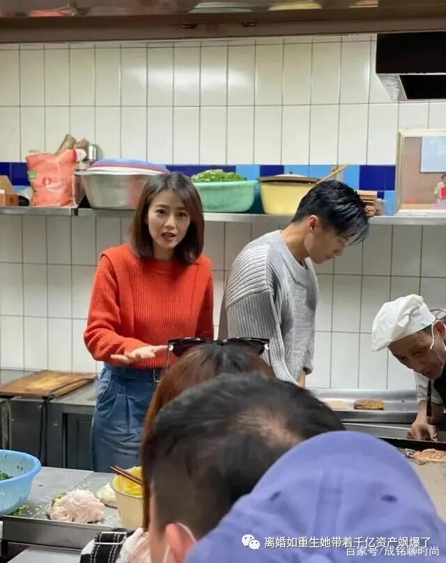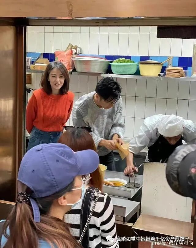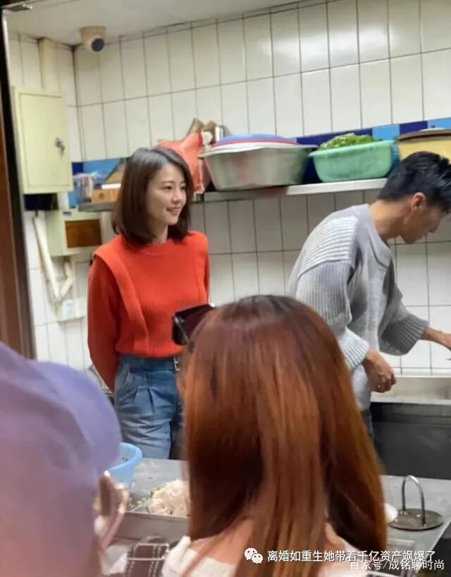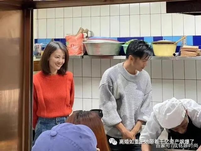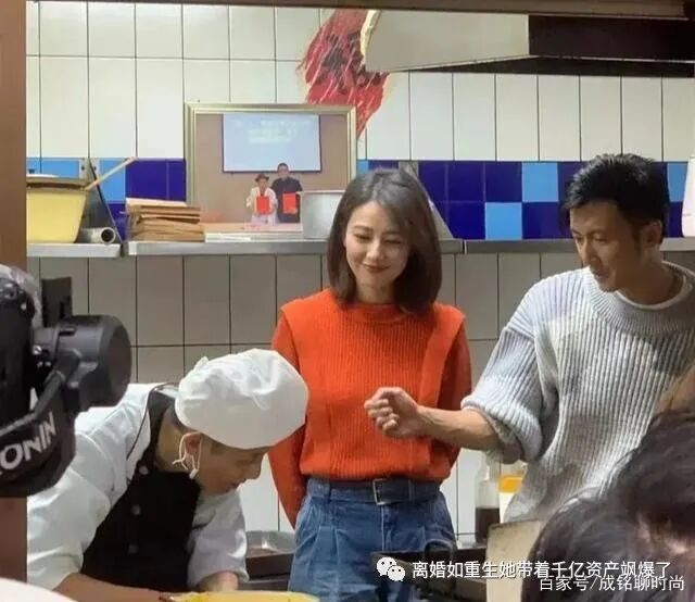 高圆圆将红色毛衣全部塞进牛仔裤中,立刻划分出身材的比例,整体给人一种干练又利落的形象,站在厨房中更加合适,没有一丝拖沓的感觉。不过从她双手背后的形象看来,应该是来学习的。