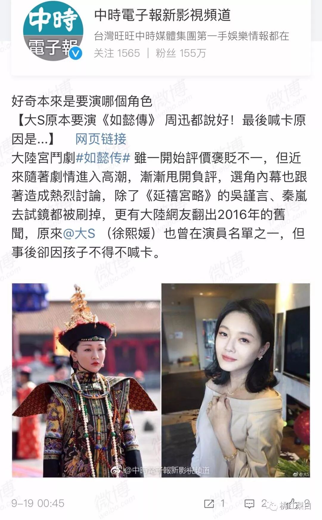 如懿的角色,之前还接触过大S ,大S因为备孕生产退出,如懿还是由她演了。