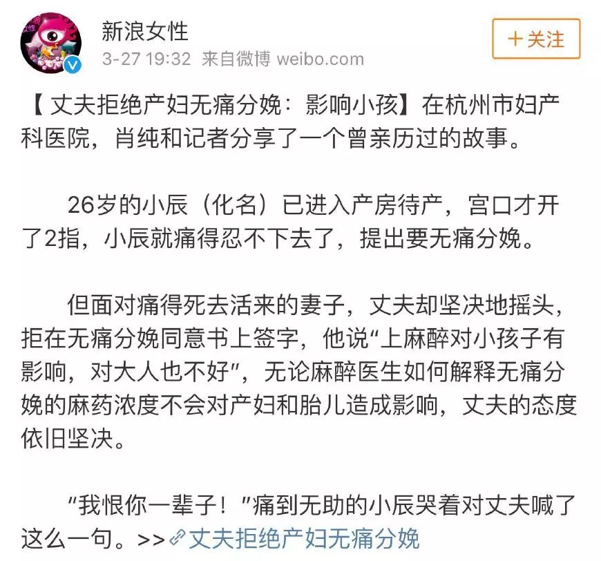 原来熊黛林是看到《丈夫拒绝产妇无痛分娩,怕影响小孩》的新闻后有感而发,该新闻讲述了一名26岁产妇的不幸遭遇,这名产妇待产的时候,因为痛到不行,提出要无痛分娩,但她的丈夫却置若罔闻,拒绝在同意书上签字,理由居然是“上麻醉对小孩子有影响,对大人也不好”,无论麻醉医生如何解释,丈夫也不为所动,“我恨你一辈子”产妇对着丈夫绝望的喊道!