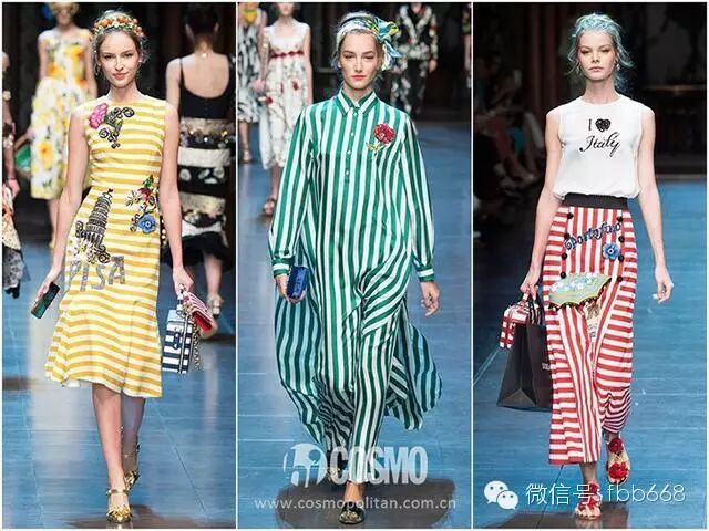 在2016春夏时装周上,彩色条纹早就在T台上肆意横行了!你们中意的“酷女孩儿”Alexander Wang,美到无法无天的Gucci,高贵独特的Prada,还有美轮美奂的Dolce & Gabbana全都玩儿起了彩色条纹风。