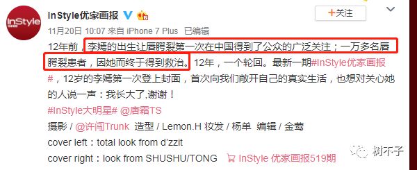 主编亲自出来解释了李嫣只是为了唇腭裂的公众关注而拍摄不是要出道——