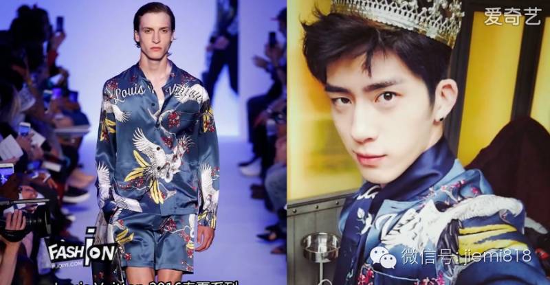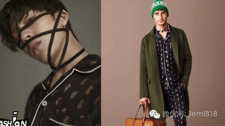 某款高定绸面衬衫出境,一个是作为杂志封面的由于眼神担当,一个是自拍当中自信又傲娇的眼神。