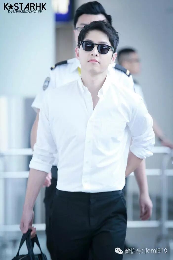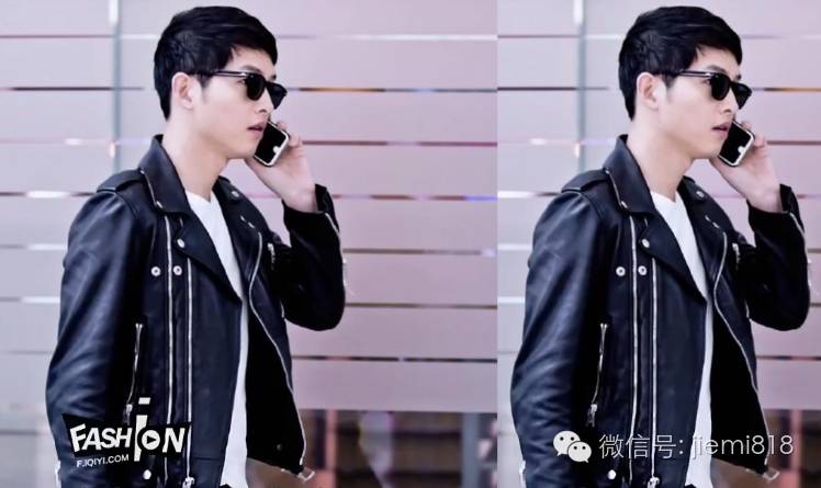 皮衣,男神的耍酷装备。井宝在某活动身着一袭帅气的皮衣出境,我们发现宋仲基也身着同款的皮衣出现在机场。