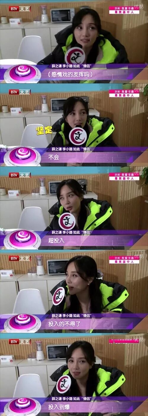 也许正是因为和两谦万的投缘,两人不仅在私底下相处的不错,李小璐还说,和薛之谦搭档,不会影响感情戏的发挥。对,她强调了四遍:不会、超投入、投入的不得了、投入到爆。