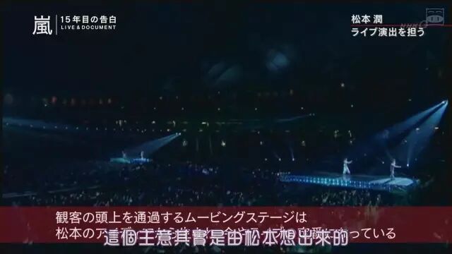 很多迷妹去过arashi的演唱会都会被各种酷炫的舞台效果所迷倒吧,很多舞台效果其实正是松本润所想出的,比如可以让观众从下往上看的透明移动舞台“Johnny'sMoving Stage”、在观众席上倒吊行走的“MJ Walk”、在30米高空吊着在观众席上浮游等,都是他发明的。这些装备不仅仅出现在岚的演唱会上,也在其他J家艺人演唱会上会看到。