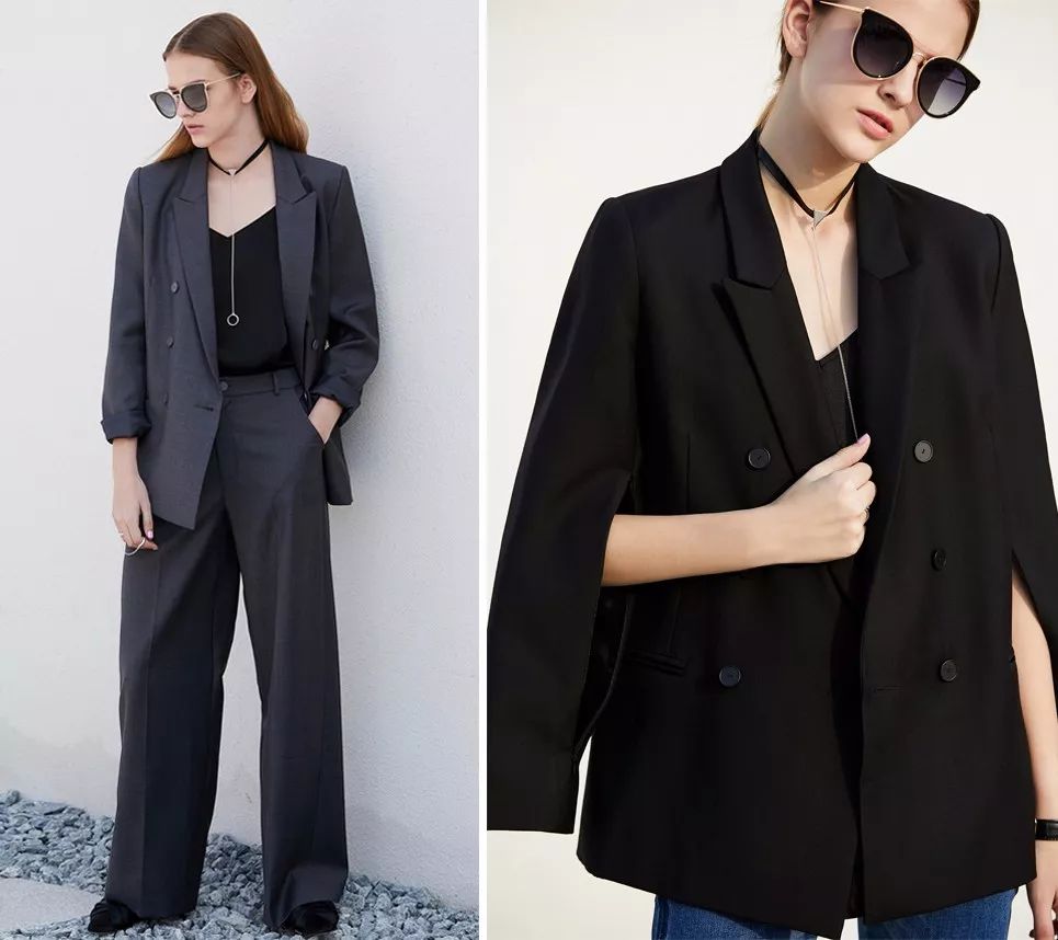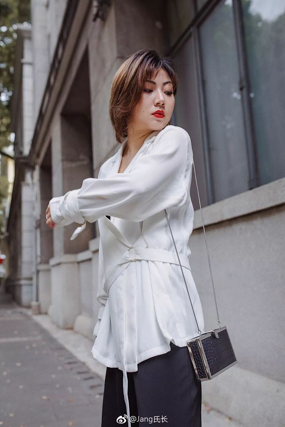 遇见一件不像会计的西装就尝试一下吧。改良过的版型与高开衩的设计糅合,配上一双高跟鞋,攻气十足,一不小心掰弯闺蜜。