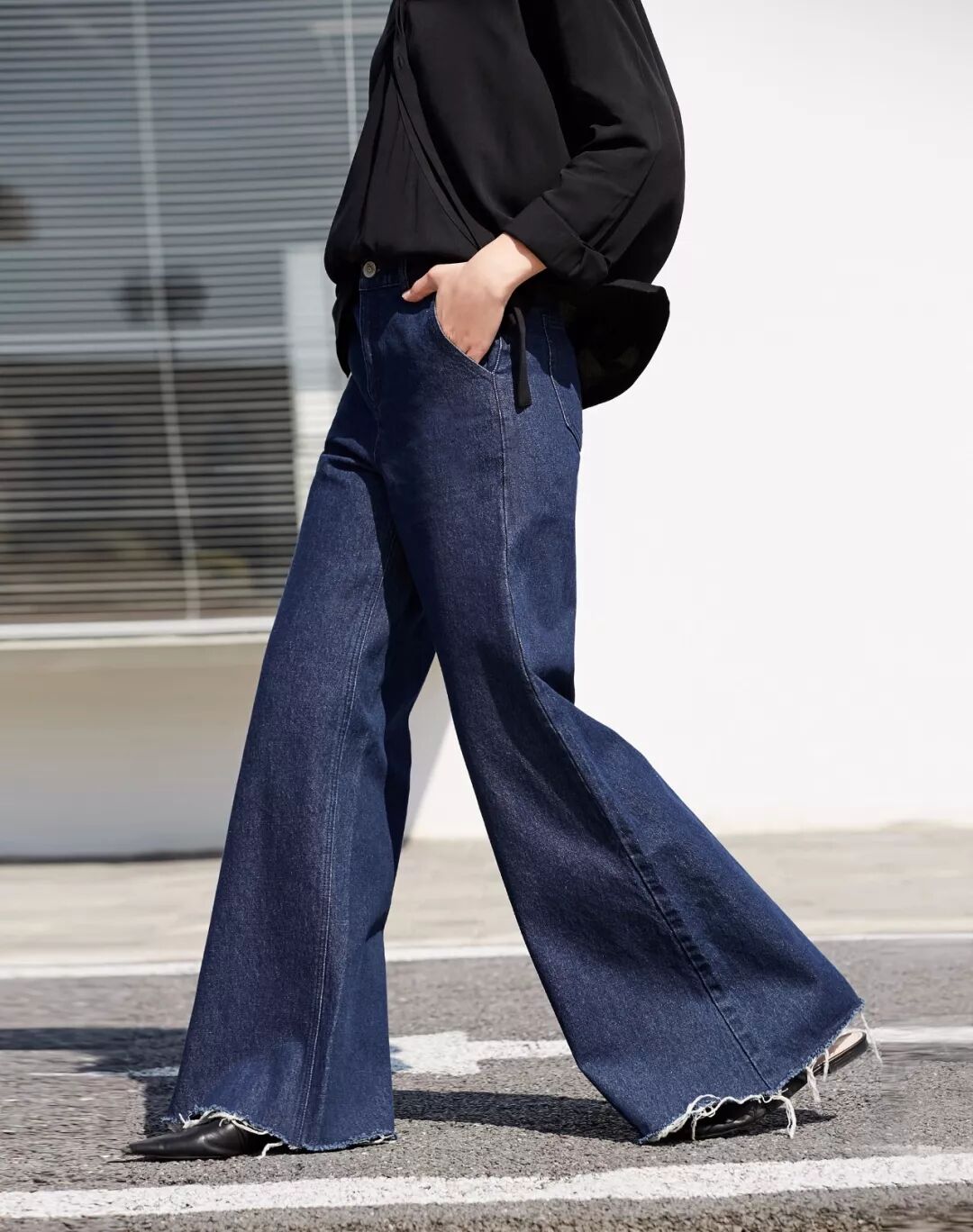李沁选择的这条裤子看上去比较基础款,但胜在大喇叭裤型自带复古嬉皮感。加大的宽度和加高的裤腰,完美地掩饰腿型,显瘦力度相当高。