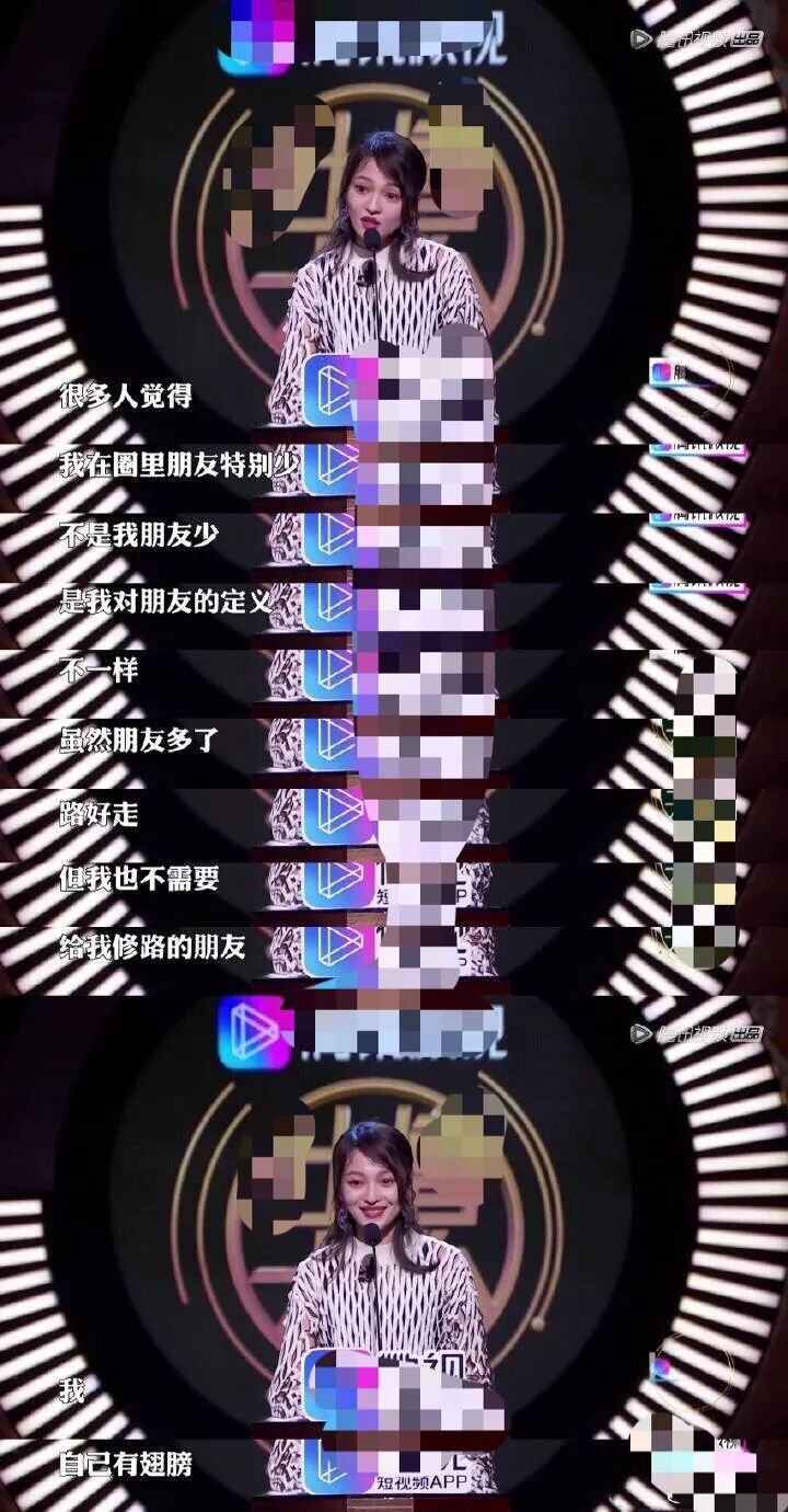 她提到自己朋友少的原因:“不是我朋友少,是我对朋友的定义不一样,虽然朋友多了路好走,但我也不需要给我修路的朋友,我自己有翅膀。”