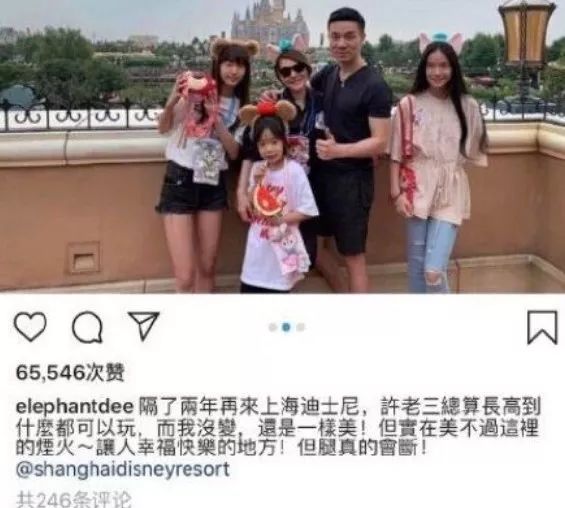 今年,小S老公被拍到和嫩模出入夜店。小S选择给老公“擦屁股”,晒出一张全家去迪士尼玩的照片,继续装作岁月静好。