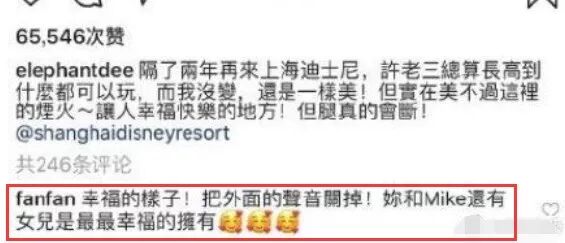 范玮琪又双叒叕出现啦,在这张全家福下面留言:“幸福的样子!把外面的声音关掉,你和mike还有女儿是最最幸福的拥有。”