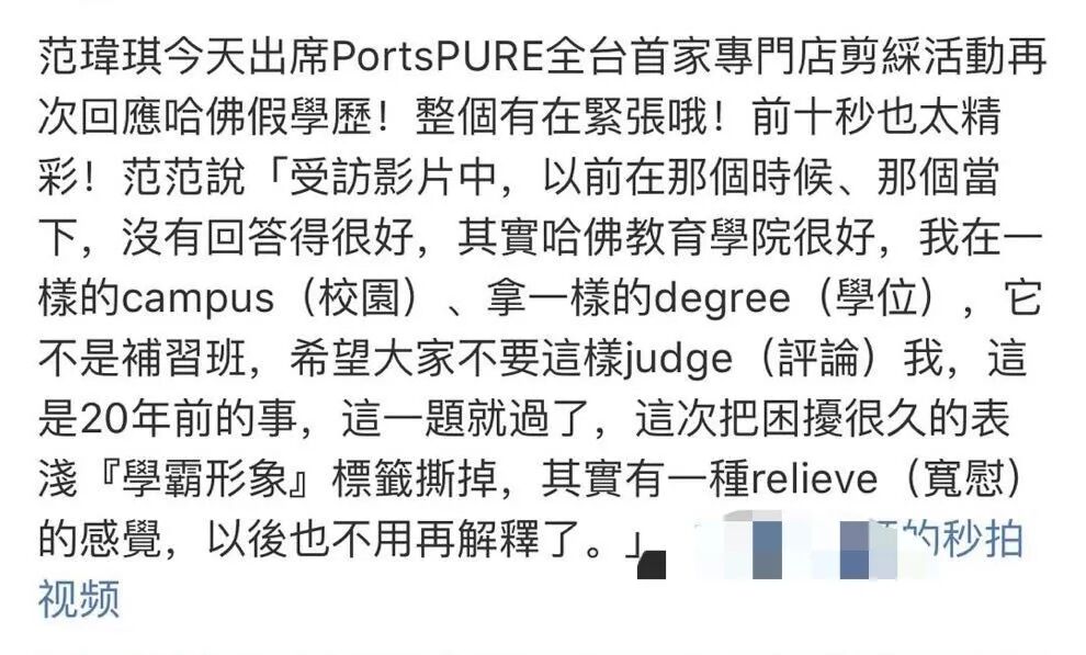 多年前的采访“出卖”了她,她坦荡荡接受了哈佛高材生的名号。