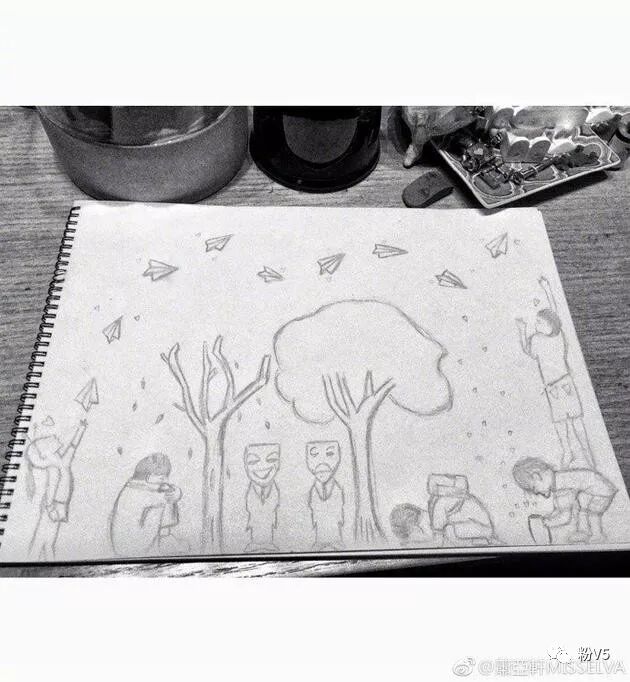 ELVA写着歌词:“王子骑白马月亮不见啦,还有猫咪总是追着尾巴,有多傻,小时候的记忆好无价,孩子们玩耍双脚全是沙,笑声让我想起童年暑假那个他,教我折飞机的他好吗,纸飞机的折法藏在回忆陪我们长大,纸飞机快飞吧,快乐方法并不复杂,不管未来怎样多变化,保留这牵挂,属于我们的童话。”粉丝猜想应该是透露现在的心情。