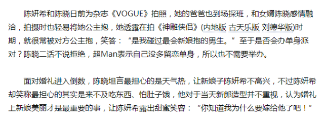 不仅拍照很照顾对方,连婚礼陈晓也表示以陈妍希美最重要,陈妍希自己都说“你知道我为什么要嫁给他了吧!”