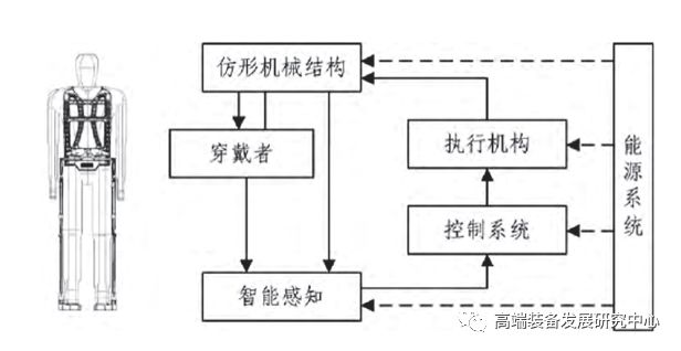 外骨骼机器人是模仿生物界外骨骼而提出的一种新型机电一体化装置,结合传感、控制、信息融合、移动计算等机器人技术,在为穿戴者提供诸如保护、身体支撑等功能的基础上,还能够在穿戴者的控制下完成一定的功能和任务。机器通过多种传感器实时感知穿戴者的运动状态和运动意图,并进行实时分析,快速做出反应,以实现人机多自由度、多运动状态的运动辅助,并对穿戴者的行为运动进行放大,提升人体机能。