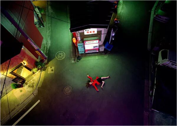 从1993年开始,日本摄影家Izima Kaoru 开始创作假象的暴力和恐怖情景。Izima Kaoru作品灵感来源于日本传统的浮世绘、波普艺术。Izima Kaoru 的作品是诗意的,焦虑的,残忍的,迷人的。