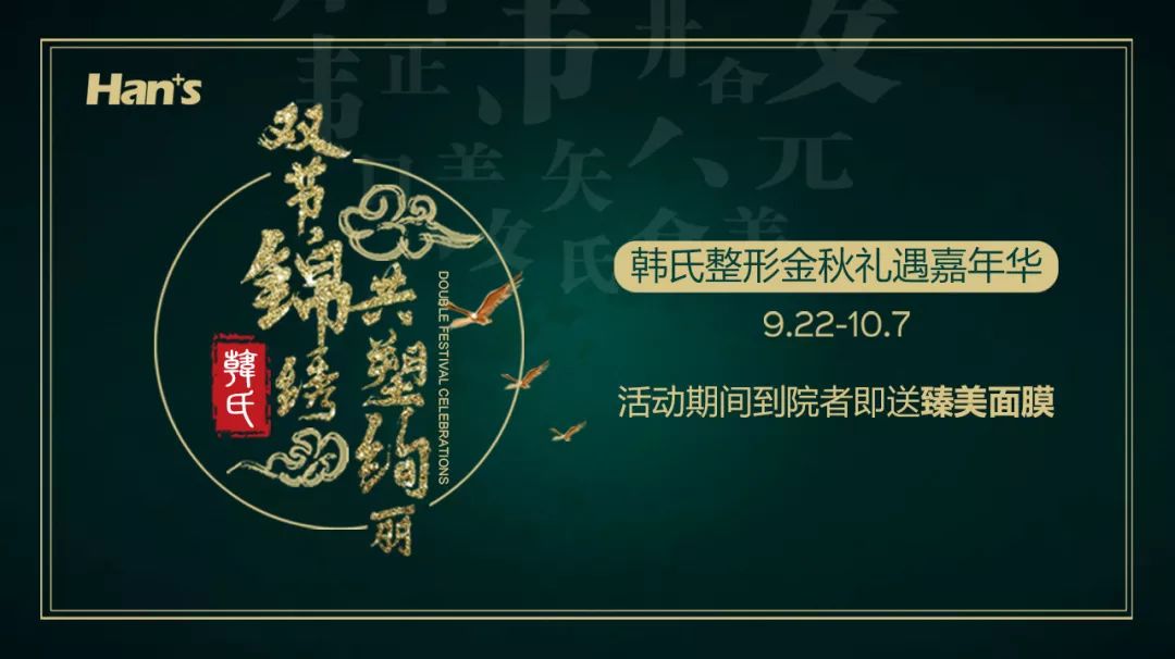 9月22日~10月7日,韩氏整形金秋礼遇嘉年华