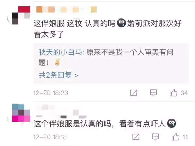 腰线和袖口处的白纱装饰设计别致,但也有人觉得伴娘服不太好看,略显臃肿,鲜花刺绣的设计有点老气,伴娘们的颜值和身材都无法挽救这套礼服。