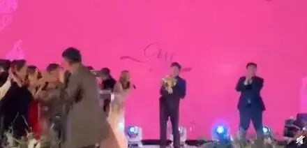 在扔捧花环节,关智斌被容祖儿他们一堆人抱着,捧花扔过来,硬是被塞到了关智斌手上。强行“被接捧花”好搞笑!