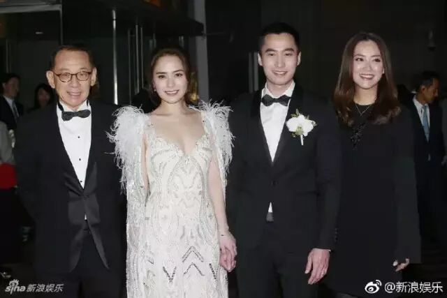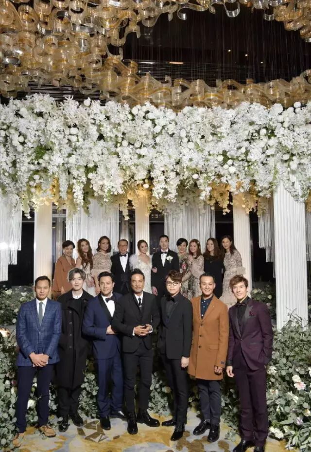 英皇老板杨受成、经纪人霍汶希也现身婚宴现场,他们就没有多么华丽的装扮啦,一身黑色礼服简单又庄重。