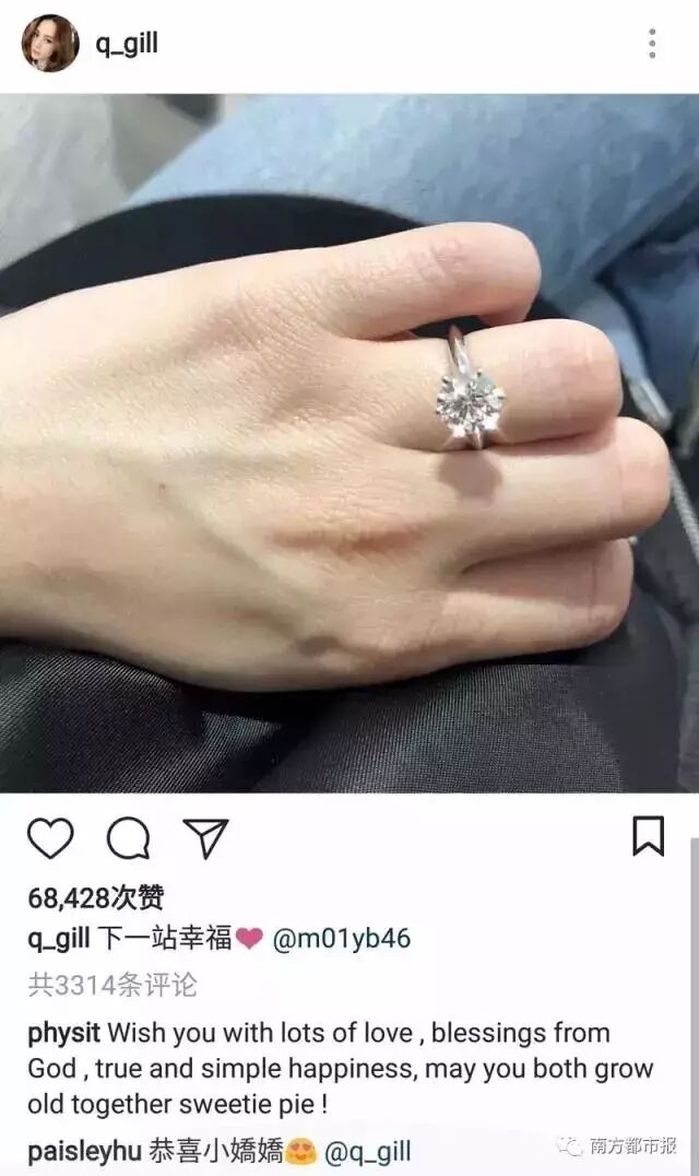 2018年2月1日,在农历生日的这一天凌晨,阿娇在微博发布了一则图文消息,九宫格照片中,引人瞩目的莫过于正中间那一张手上戴着钻戒的照片。