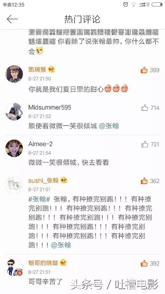 近期,张翰微博推《夏日甜心》惨遭《微微一笑》屠屏这样真的好吗!