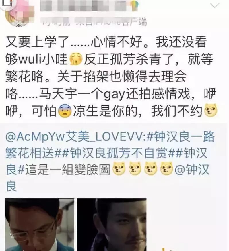这场撕逼战追溯到去年,是你都想象不到的恶毒!钟汉良粉丝当时把马天宇骂上热搜,“马天宇X菊花惨死”的讨论度高达28w。