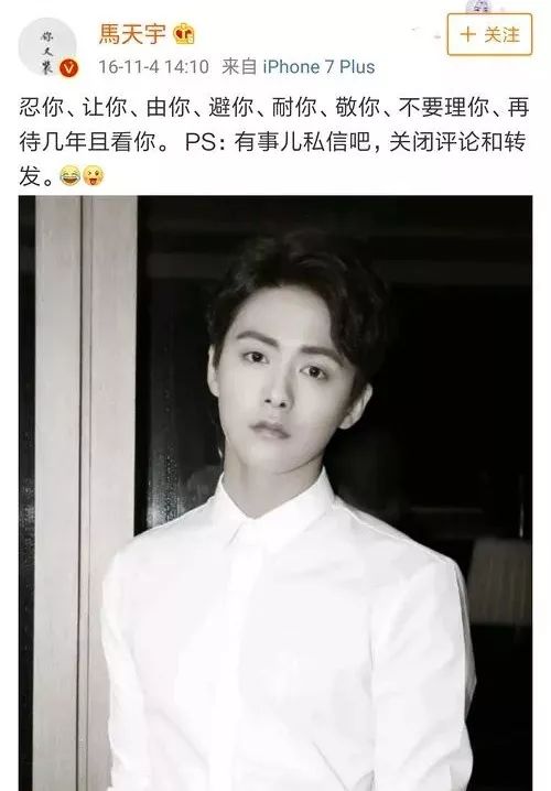 正当粉丝吵的不可开交,马天宇又发了条微博劝大家别撕: