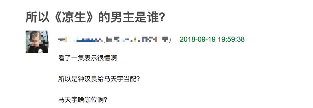 有网友认为,电视剧的名字叫《凉生》,马天宇肯定是男主。