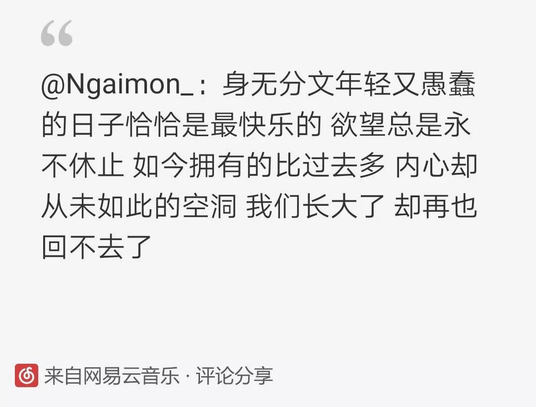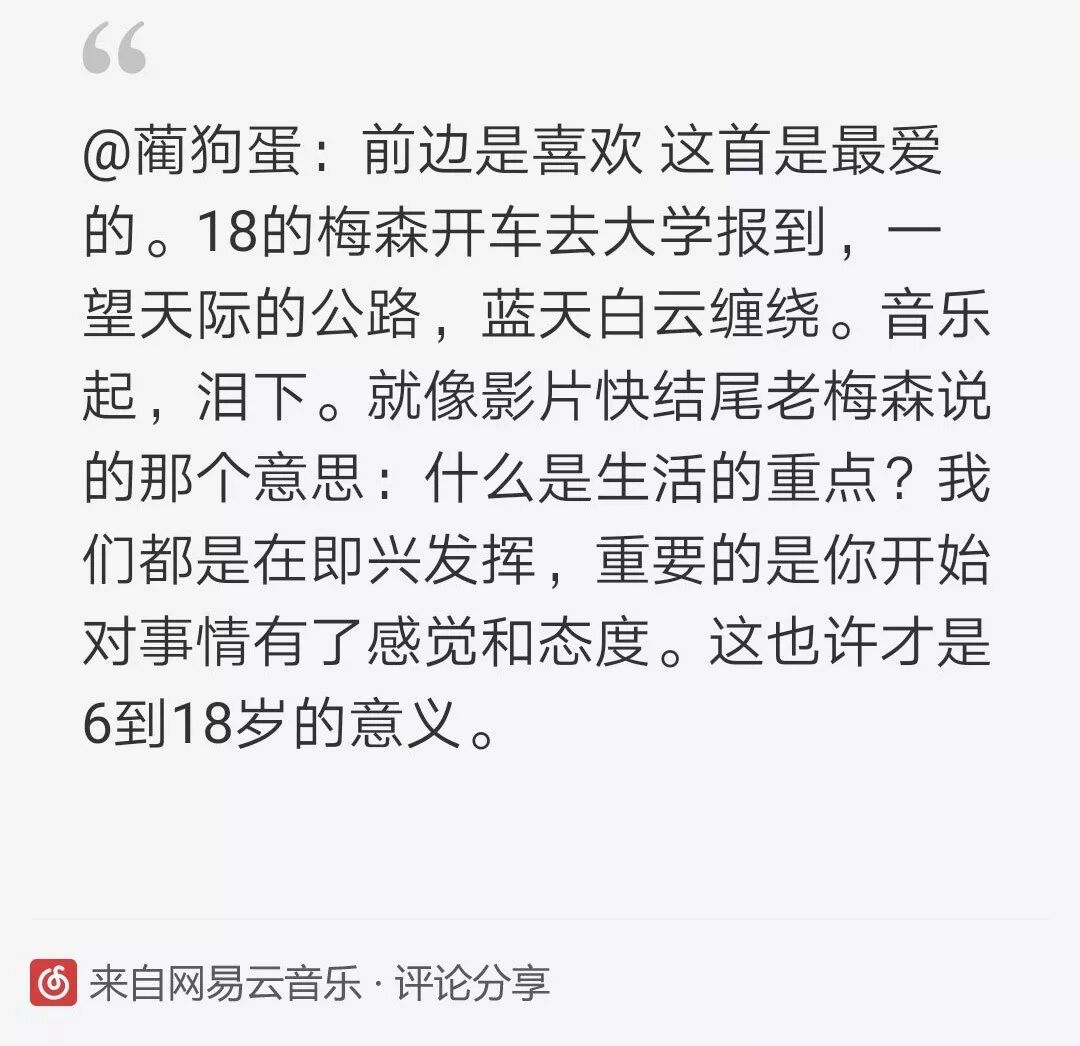 这首歌是电影少年时代的主题曲。我没看过这部电影,但我却爱上了这首歌。它的旋律那么忧伤又那么充满阳光,它的歌词那么悲伤又那么充满希望。音乐的魅力就在于它所表达的东西是那么广阔那么有力。