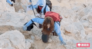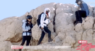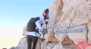 最前面的她一直在提醒大家一定要踩稳,一次次地帮助身后杨超越爬过陡峭的石头▼▼▼