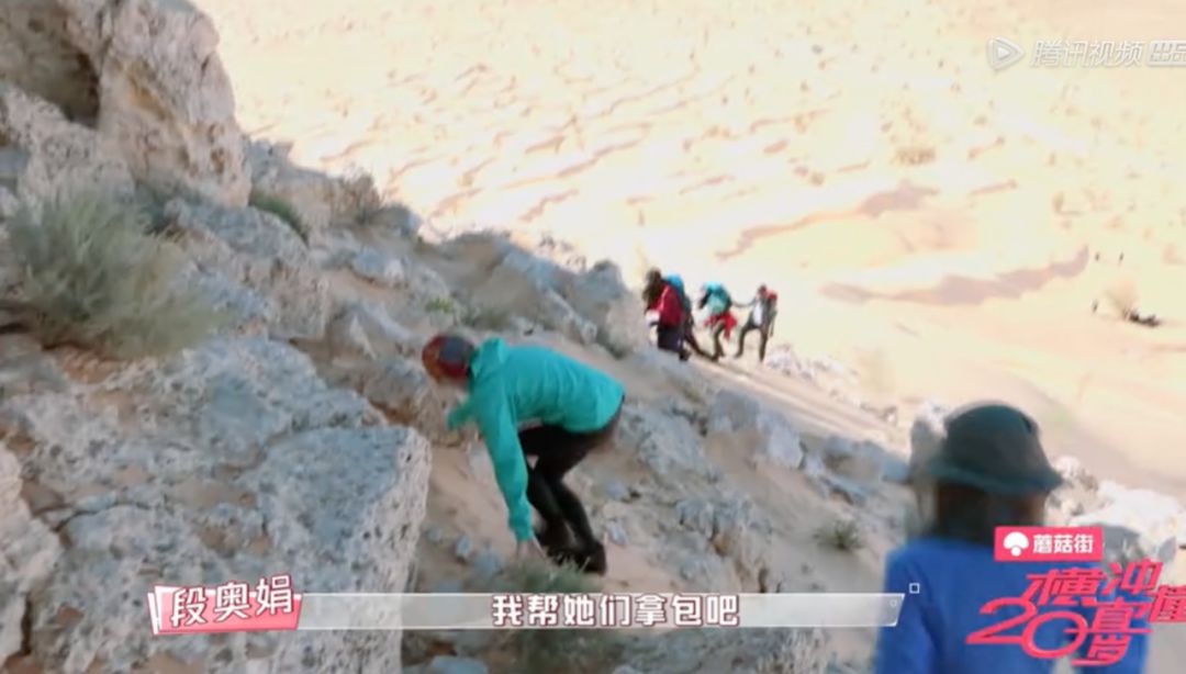 杨超越和大娟率先登顶成功后,段奥娟再返下去帮忙。